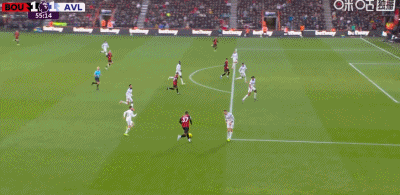 第22分钟,摩根-罗杰斯右路劲射破门,维拉1-0领先伯恩茅斯