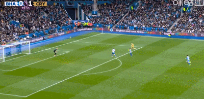 第62分钟,萨尔冷静推射破门,水晶宫1-0布莱顿