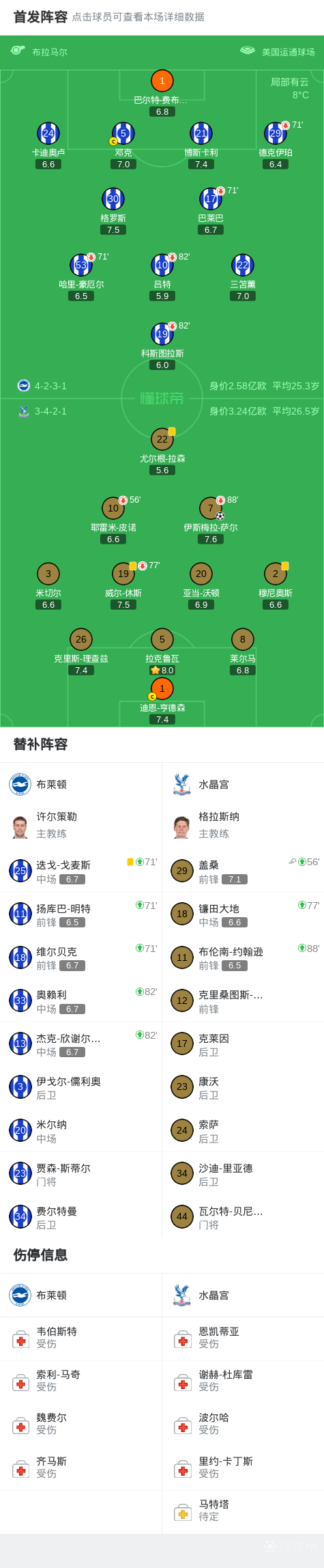 北京时间2月8日英超联赛第25轮,布莱顿主场对阵水晶宫。伊斯梅拉-萨尔推射破门打进全场唯一进球,尤尔根-拉森造险。最终,水晶宫1-0客胜布莱顿,取得近13轮首胜。