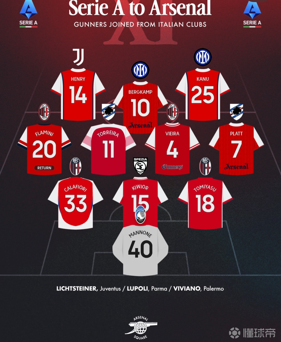 阿森纳从意甲签下的球员们