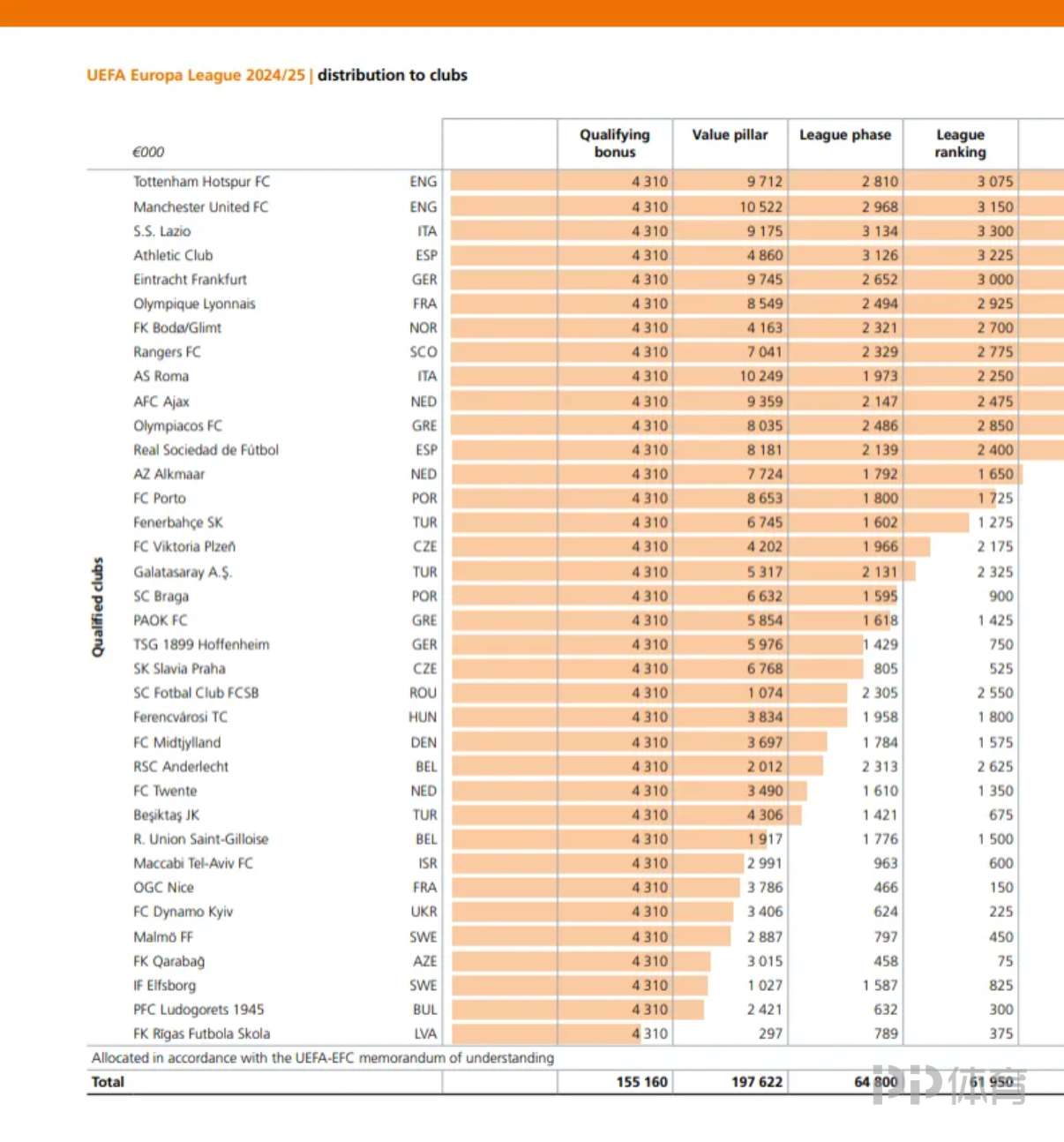 欧联总奖金:冠军热刺获4136万欧,曼联3640万欧